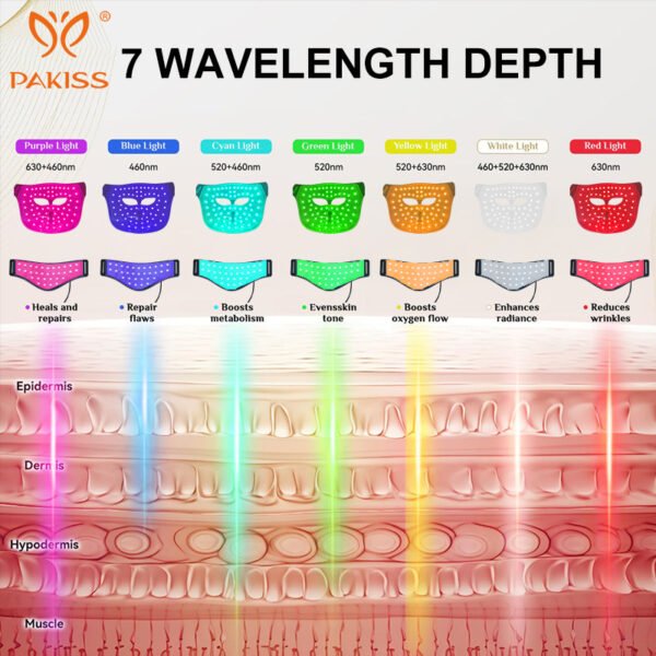 7-Color Multi-Wavelength LED Light Therapy (Red / Blue / Green / Yellow / Purple / White / Cyan)