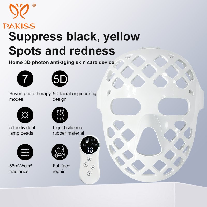 This 5D LED Light Therapy Mask is built with a breathable silicone grid structure designed to maintain a precise 1cm “golden distance” between the light and the skin. Equipped with 51 narrow-band LED beads, it delivers stable and targeted wavelengths that help boost skin firmness, reduce fine lines, and restore a healthier, more balanced complexion. The flexible 5D curved design adapts naturally to facial contours, ensuring even illumination while keeping the mask lightweight and comfortable for daily use. Made from food-grade liquid silicone, this LED facial mask offers a gentle, skin-safe experience ideal for home skincare routines or professional beauty treatments. Perfect for users seeking an effective LED light therapy solution to rejuvenate and enhance overall skin quality.