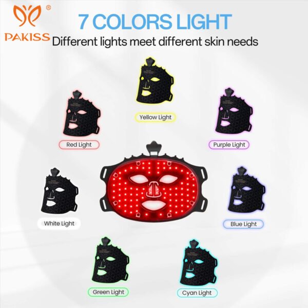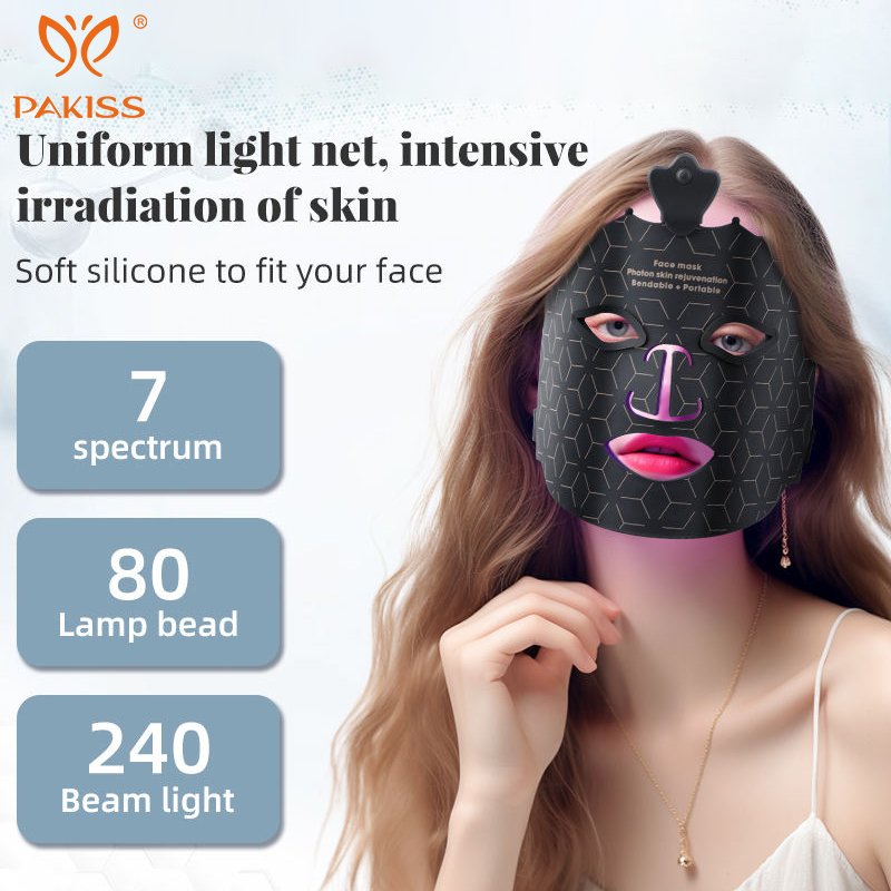 Material:Soft skin-friendly silicone + high-transmission LED light beads Technology:7-Color LED Light Therapy (Red, Blue, Green, Yellow, Cyan, Purple, Near-Infrared) Function:Anti-aging support, wrinkle reduction, skin repair, calming care, brightening, complexion balancing Application:Home skincare routine / beauty salon facial treatment / daily light therapy session Product Description: This bendable LED facial mask is designed with soft silicone that molds comfortably to the contours of the face, allowing light to reach the skin evenly and efficiently. Equipped with seven LED light modes, it supports multiple skincare needs—from smoothing fine lines and improving texture to calming irritation and brightening dull areas. Lightweight and flexible, it fits naturally against the skin, making it easy to incorporate into everyday facial skincare without discomfort. The full-face light coverage helps deliver a balanced, consistent treatment suitable for both home use and professional beauty environments.$43.00