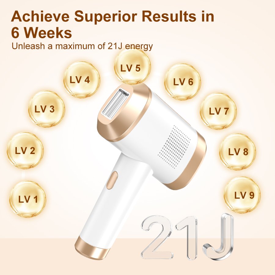 𝐅𝐚𝐬𝐭 𝐑𝐞𝐬𝐮𝐥𝐭𝐬 𝐢𝐧 𝐉𝐮𝐬𝐭 𝟑 𝐖𝐞𝐞𝐤𝐬: Thanks to its powerful energy output (Max. 22J) and 600+nm wavelength, our laser hair remover for women ensures deep penetration into the hair follicle for effective removal. You’ll see visible hair reduction within 3 weeks and full smoothness in 6 weeks. Perfect for any occasion, from everyday life to special events.